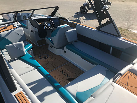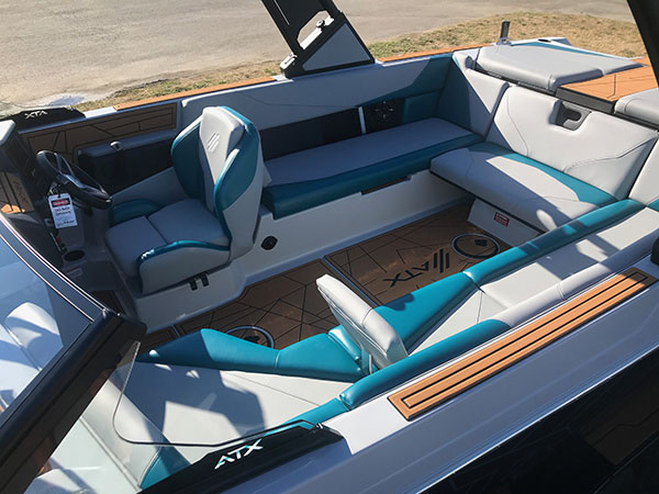 Designed for maximum fun on the water with a large crowd, our ATX is 24 feet long and features a wide beam, providing ample room for the entire group. It has a spacious rear lounge area that can be converted into additional rear-facing seating, plus ample front- and rear-facing seating for spectating. It also features a simple, straightforward system for fast ballast management, wave creation and adjustment, and an onboard heater.